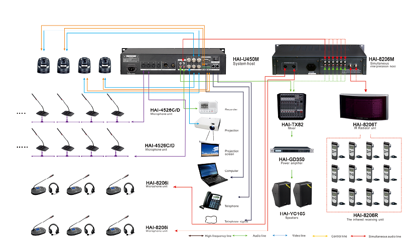 ✅ Sistem interpreter lengkap (pemancar, penerima, & headset)
